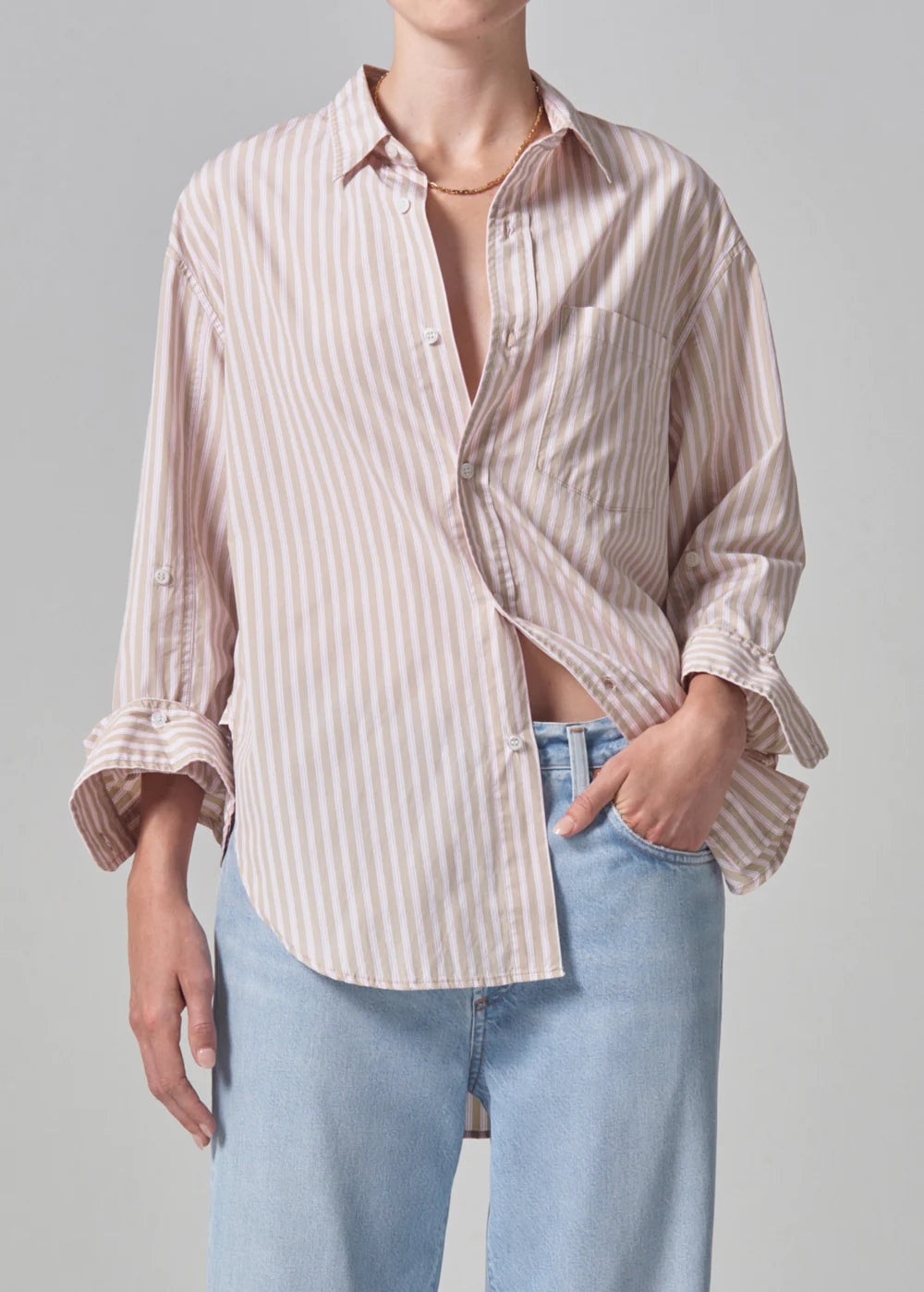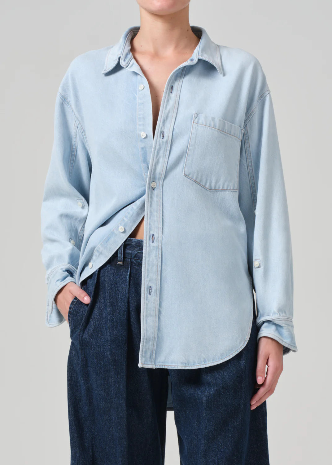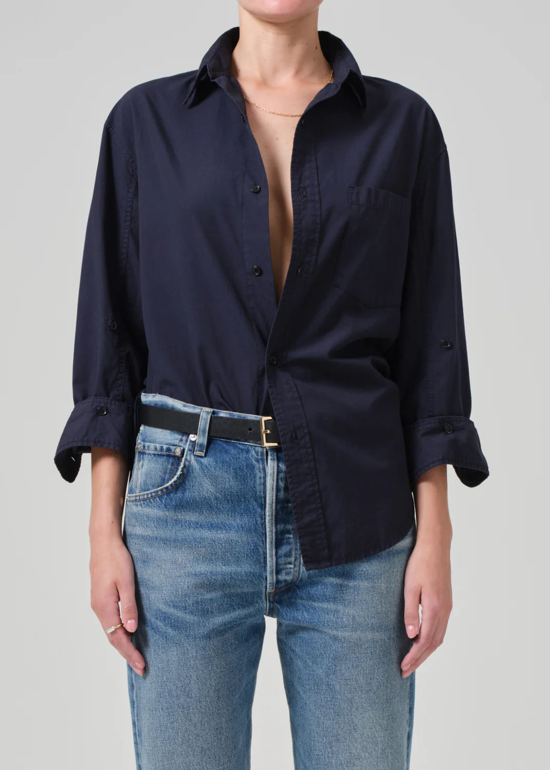 Our Kayla Shirt is a must-have for every wardrobe. An oversized silhouette and high-low hem give new dimension to a timeless staple.