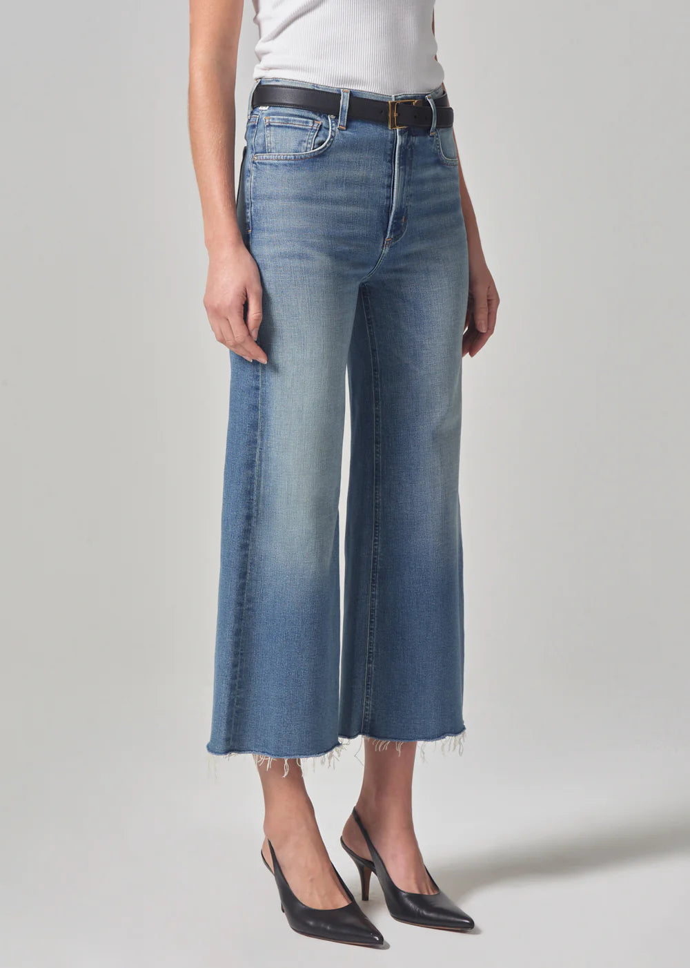 Our Lyra is a vintage inspired silhouette that sits high on the waist with an easy, relaxed top block cut with a cropped inseam with a voluminous wide leg.