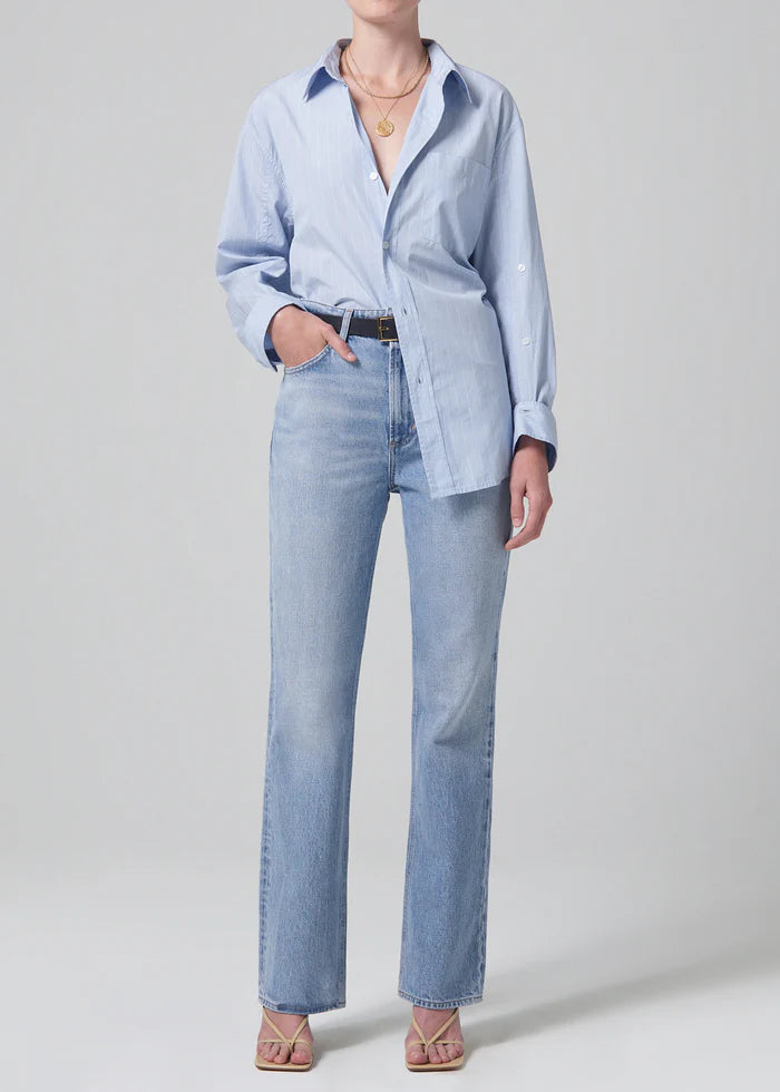 The Zurie has a contoured waist and a tidy top block that sits on the body with just the right amount of ease. The leg silhouette is sculpted to create an elegant bowed shape - making this straight leg stand apart from the rest.