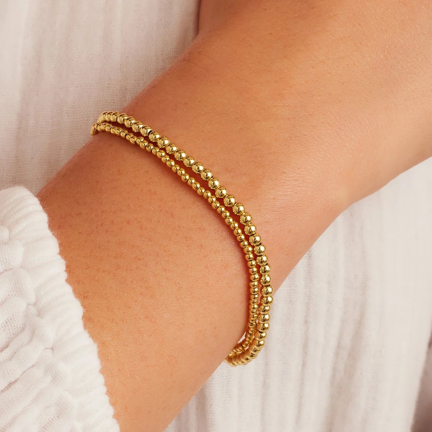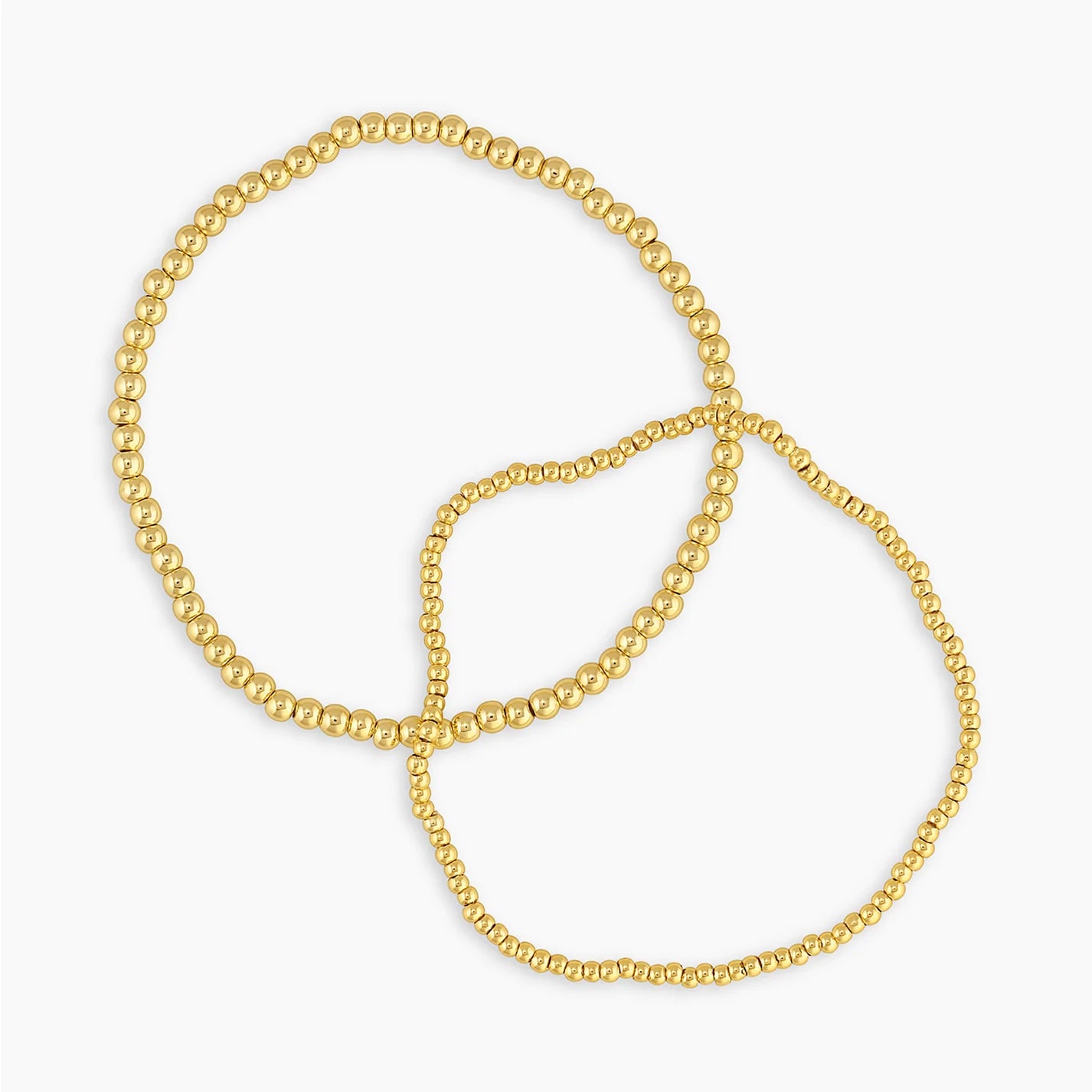 This set of two, easy-to-wear elastic bracelets are perfect for stacking or wearing solo. Wear your bracelet set with a colorful Poppy Gem Bracelet set or with your other favorite gold bangles.