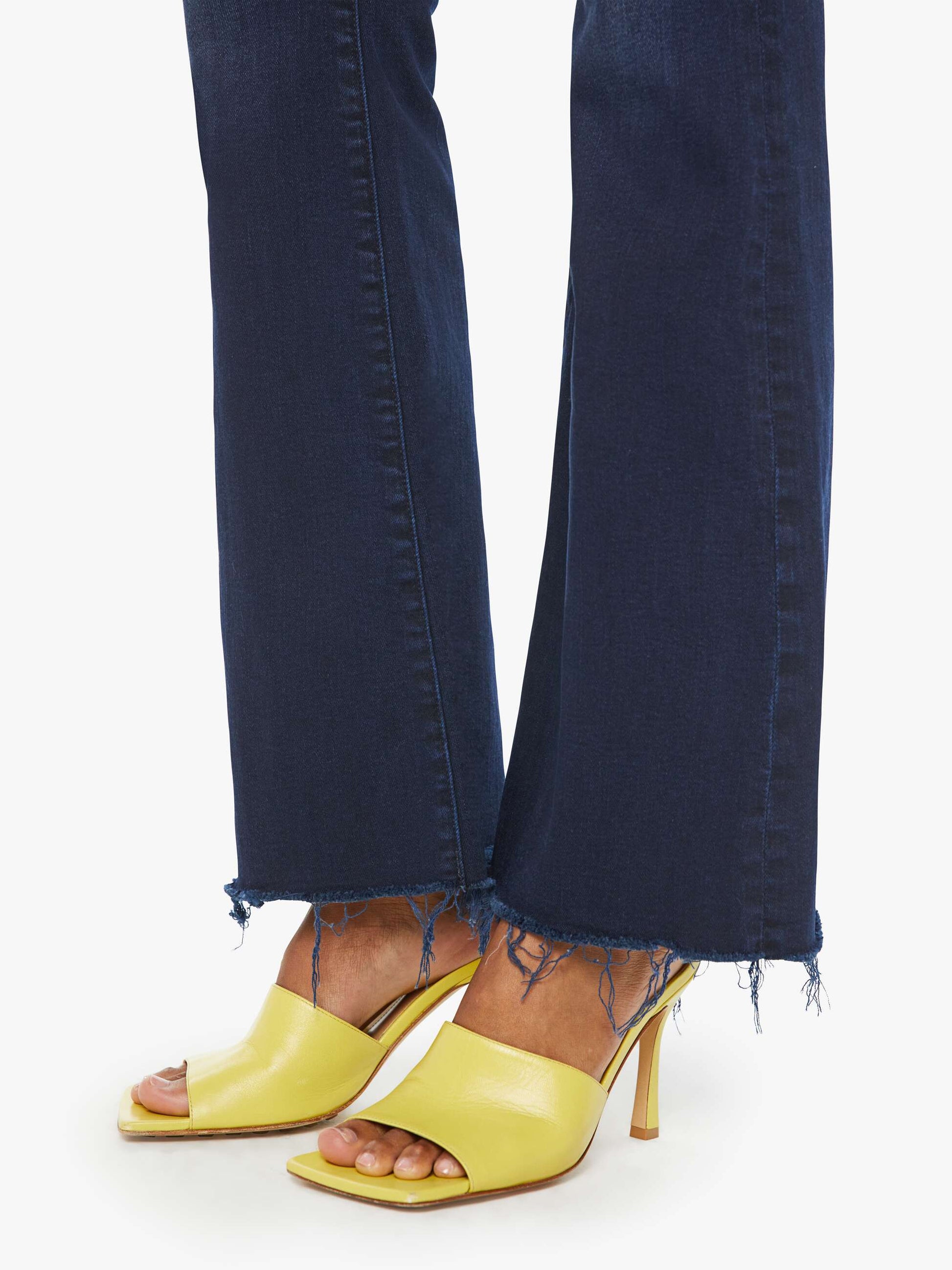 Brush it off. Our most popular mid-rise flare has a 31-inch inseam with a frayed hem. Cut from denim with a touch of stretch, Chip On My Shoulder is a dark blue wash with super subtle fading and whiskering.