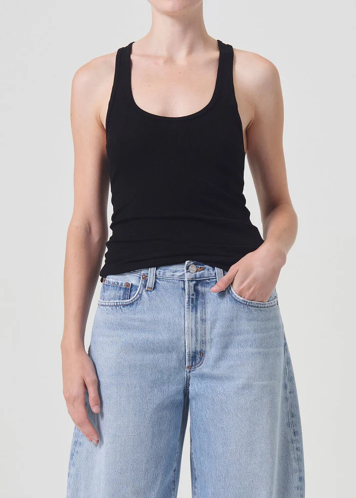 This essential piece gets an upgrade. Our Bianca tank features a timeless ribbed-knit design, snug fit, and the versatility to be dressed up or down.