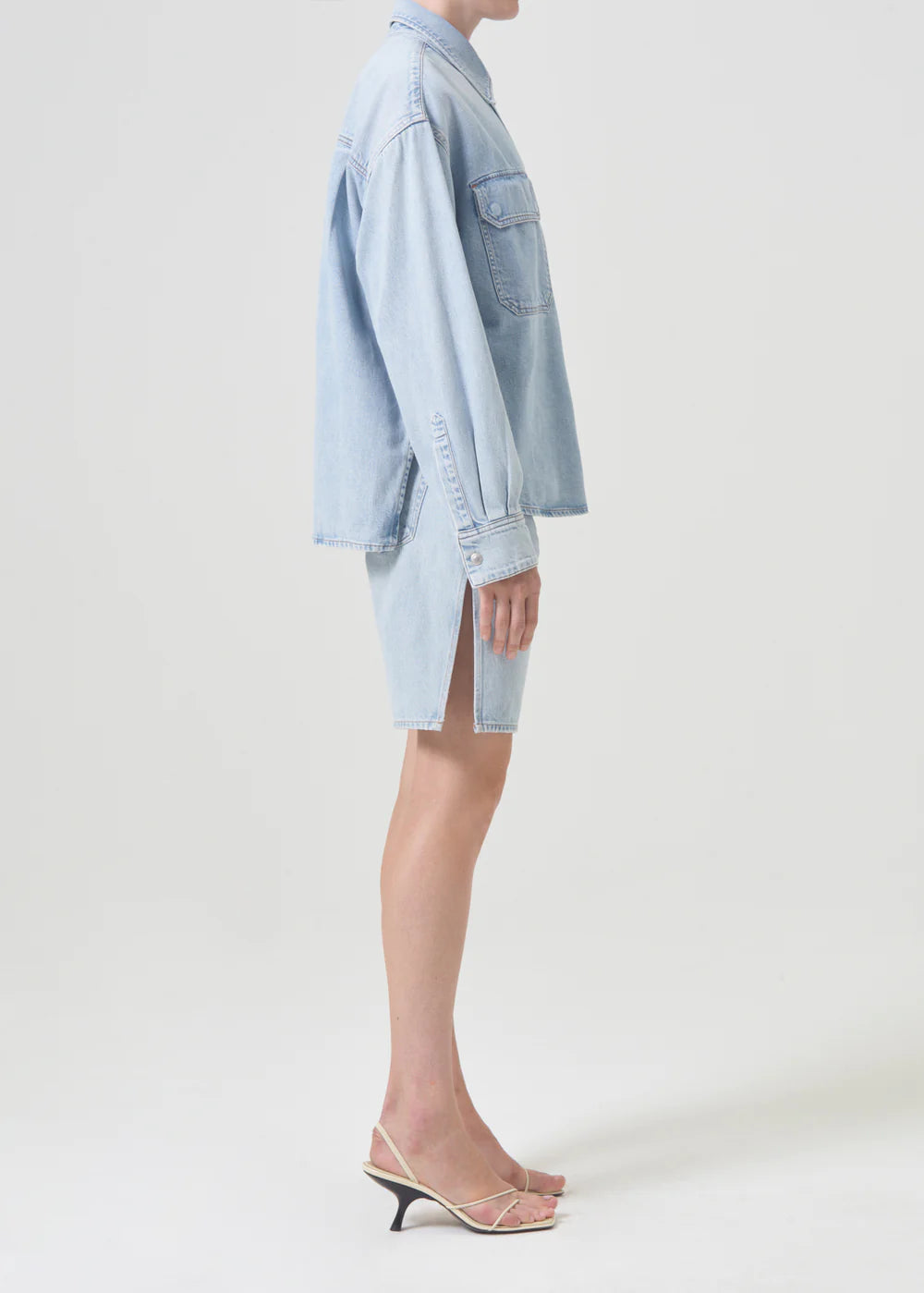 Tailored to perfection. Our Gwen features the classic button-down silhouette with two exaggerated chest pockets hitting just at the waist making it easy to tuck into high-rise denim or untucked with an easy low-slung pair of denim.