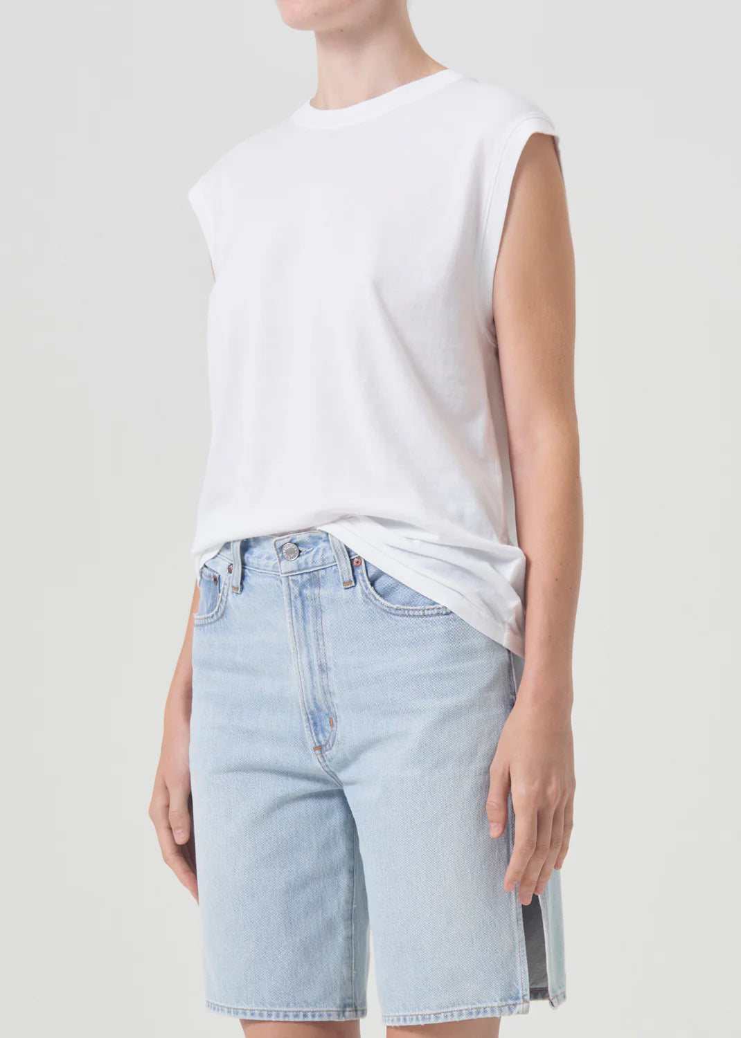Crafted in our lightweight polished jersey - the Raya tank features a relaxed body with a subtle cap sleeve and high crewneck. This easy tee can be worn tucked into high-waist denim to give an ultra-flattering silhouette.