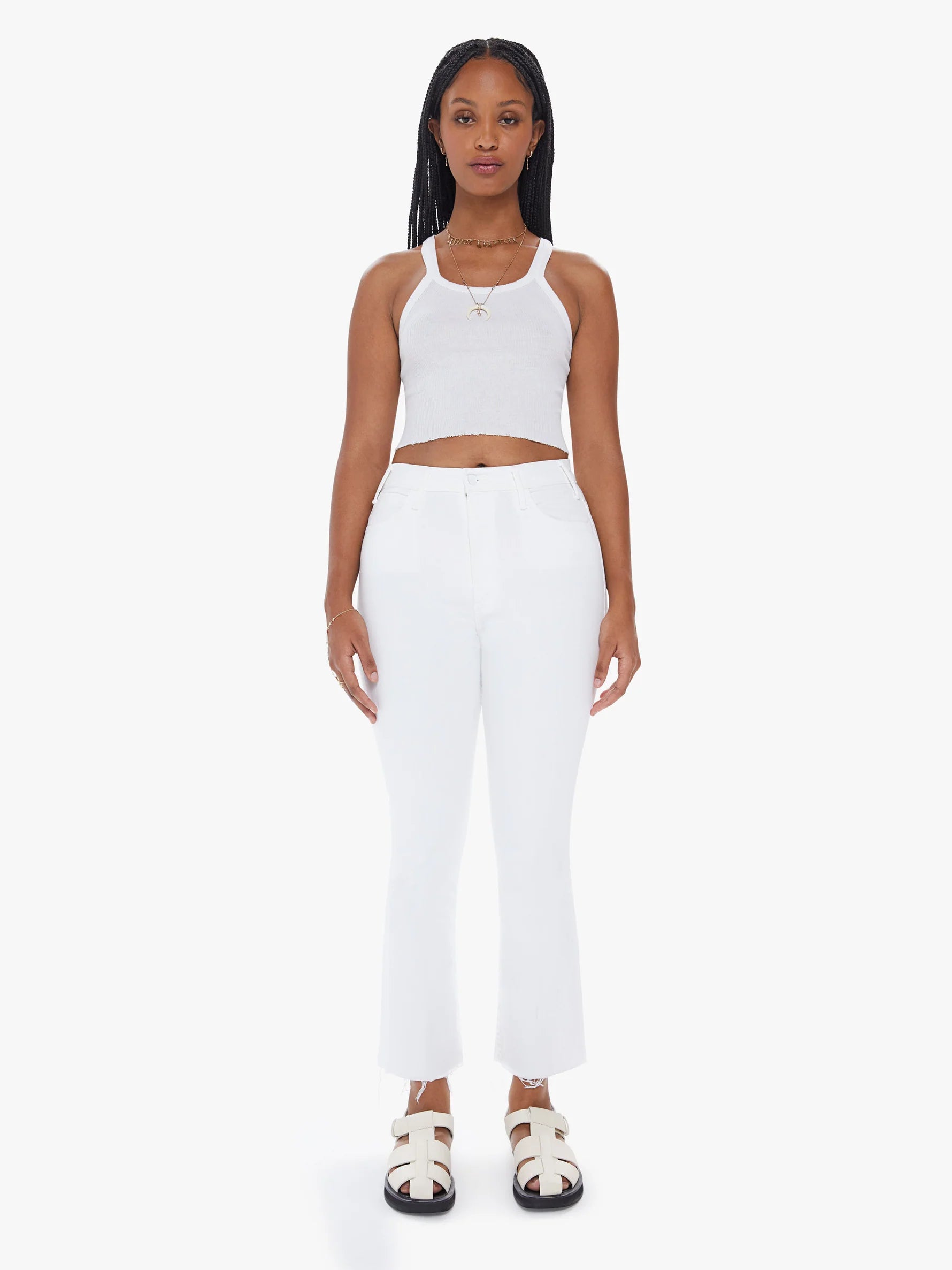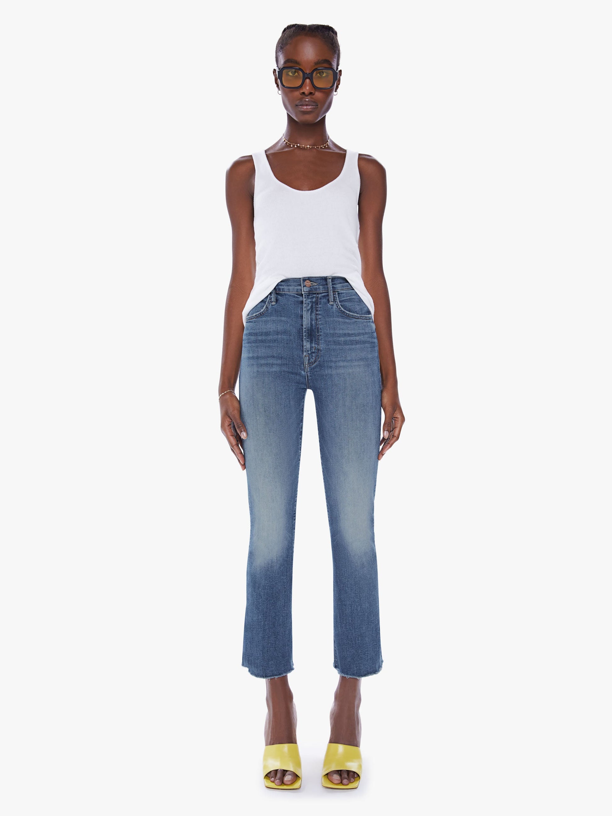 Mirror, mirror. This bestselling high-rise flare has an ankle-length inseam and a raw hem. Made from stretch fabric.